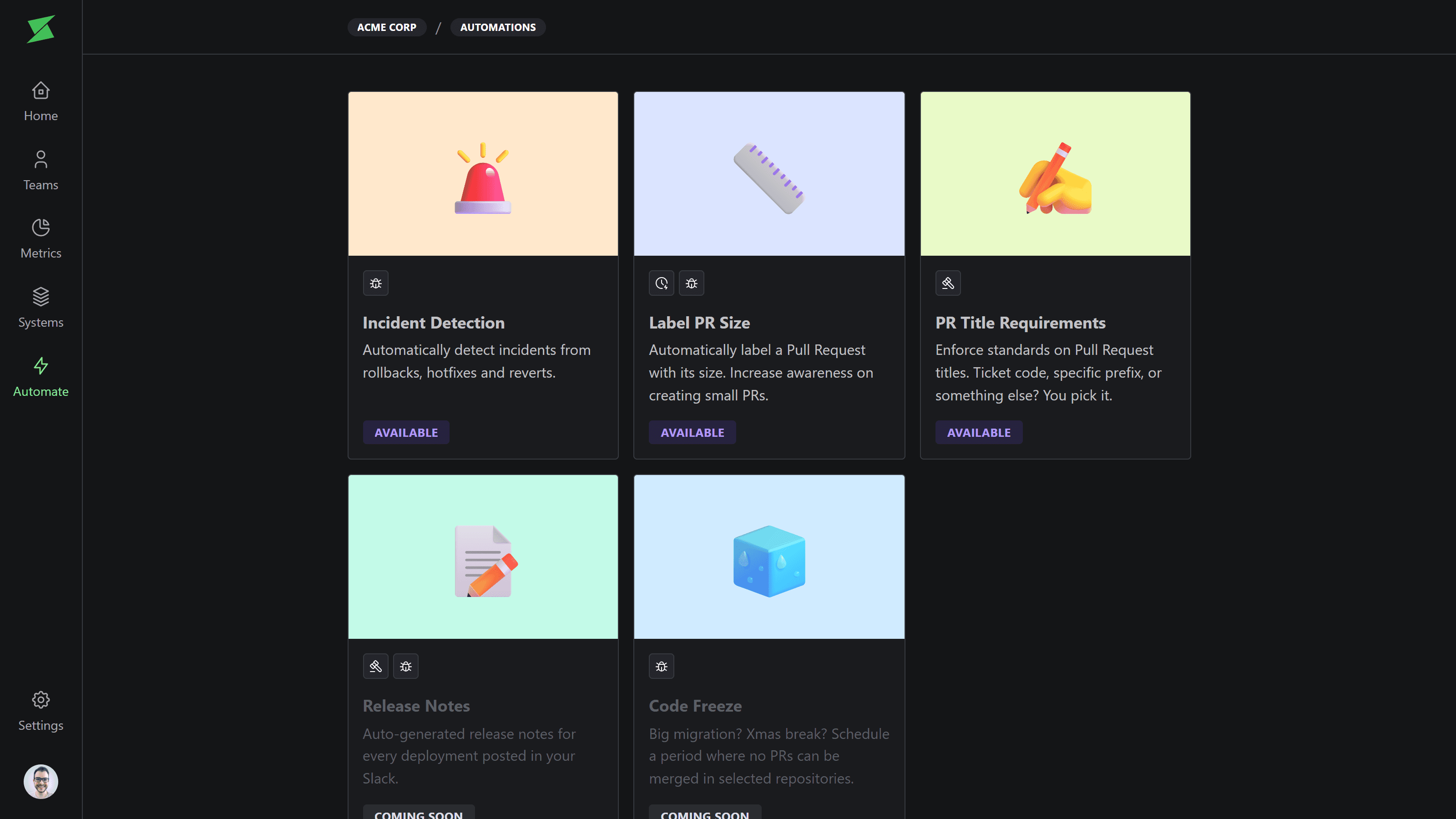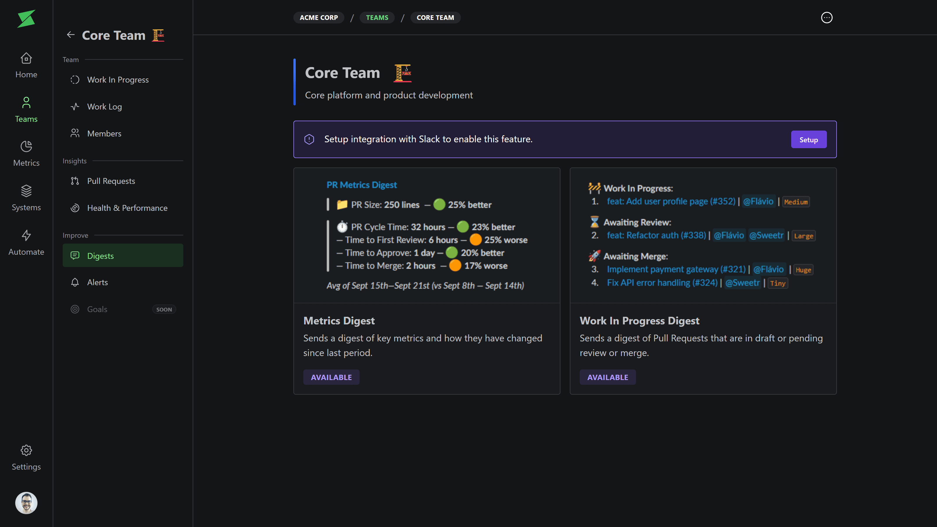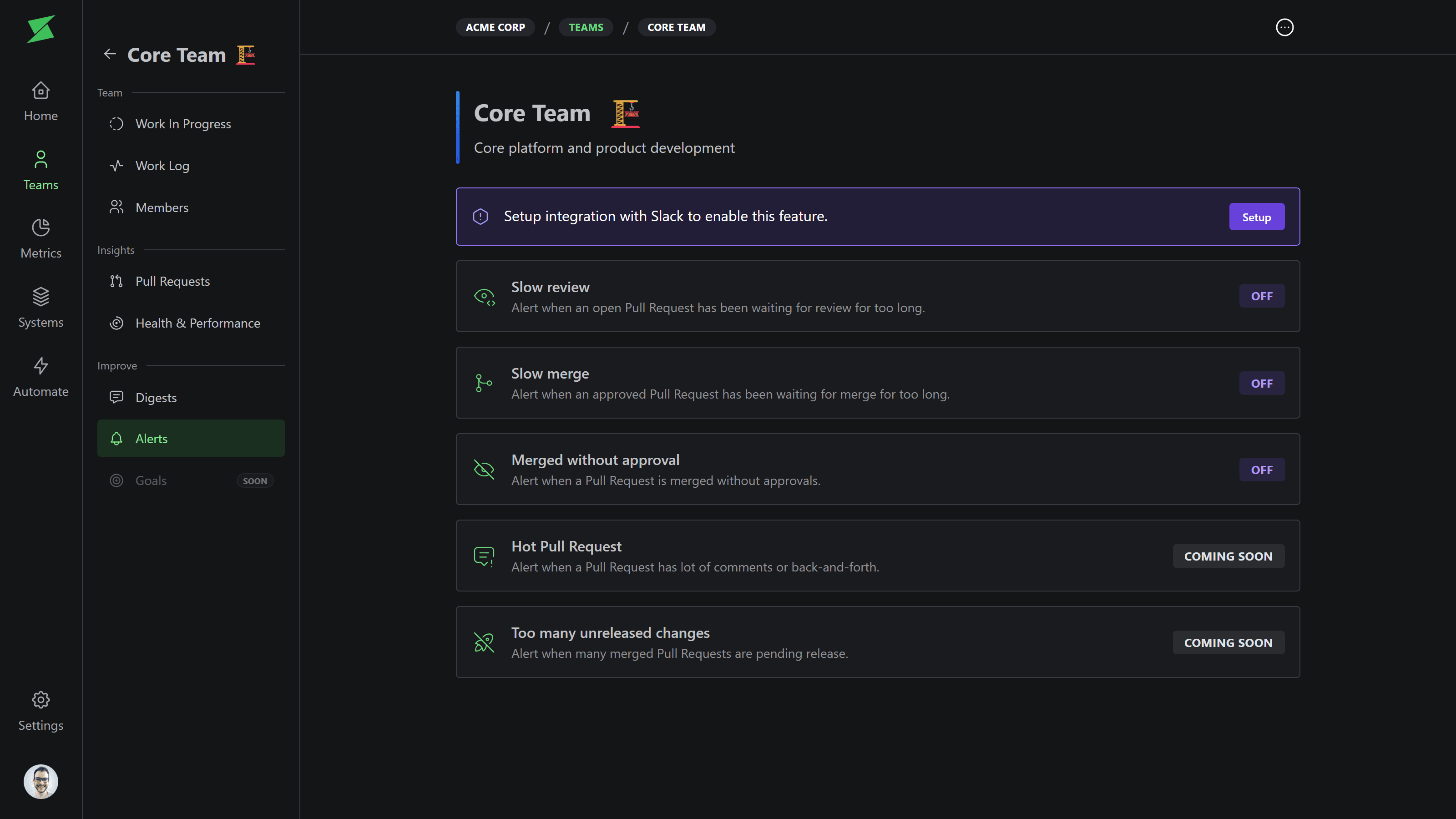 Fast to adopt and flexible to rollout. Connect GitHub & Slack and you're ready to go.