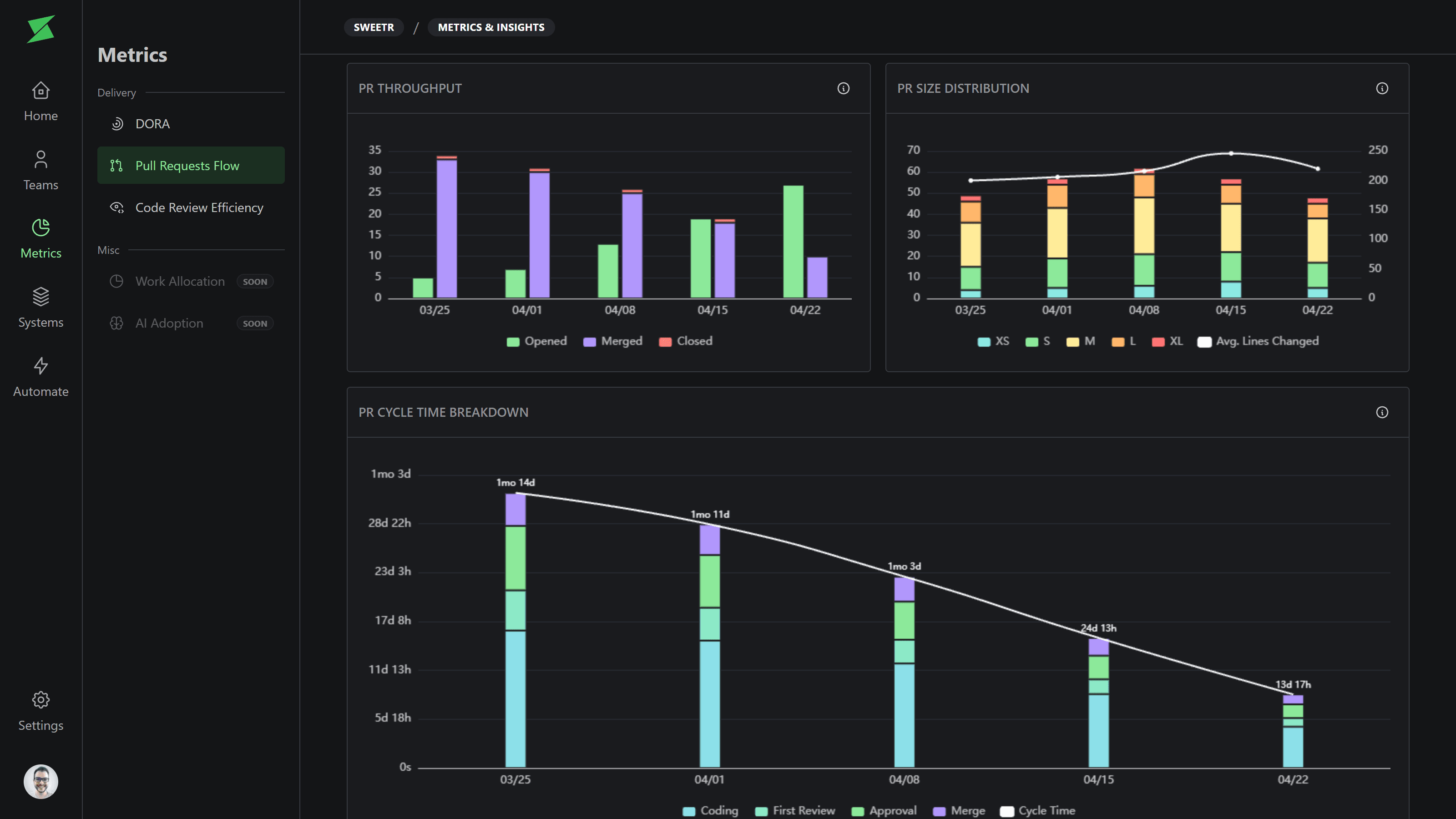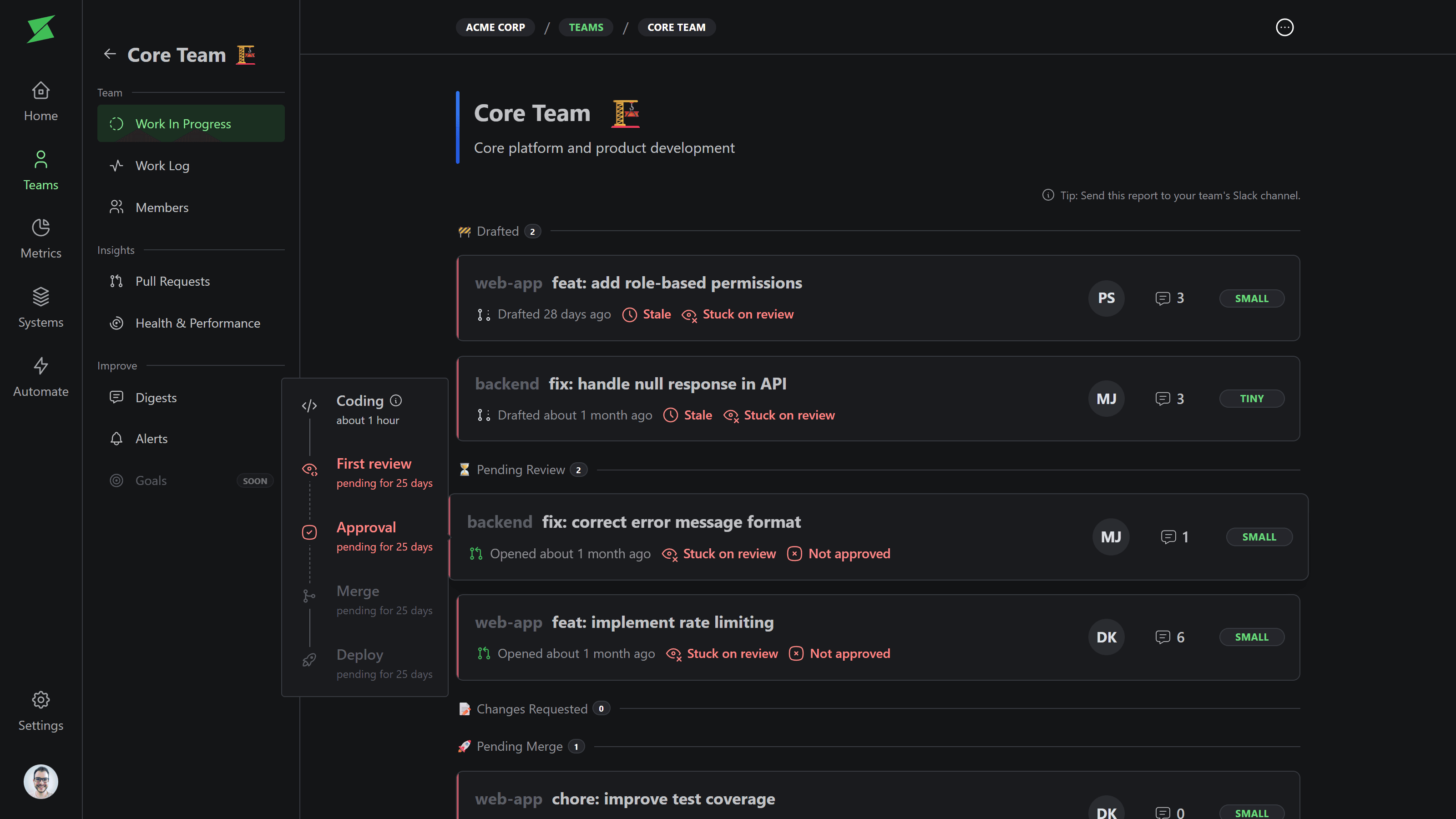 We don't count commits or rank developers. That's toxic. We give you context to coach, not score. Read our guiding principles.